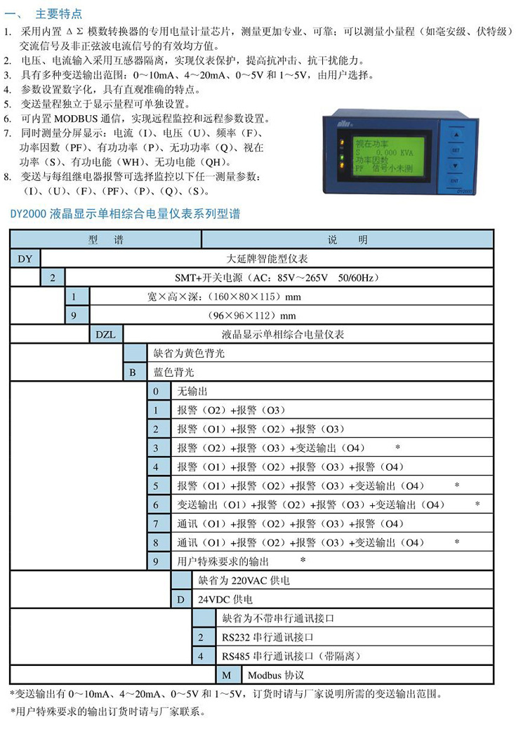 东辉仪表DY2000(DZL)液晶显示单相综合电量仪表商品描述: