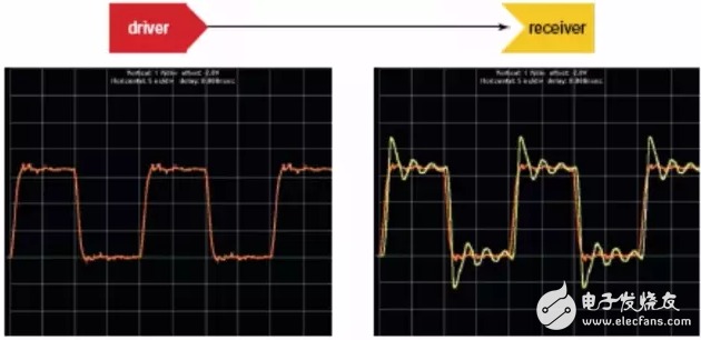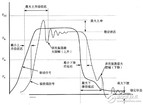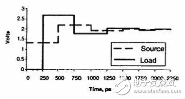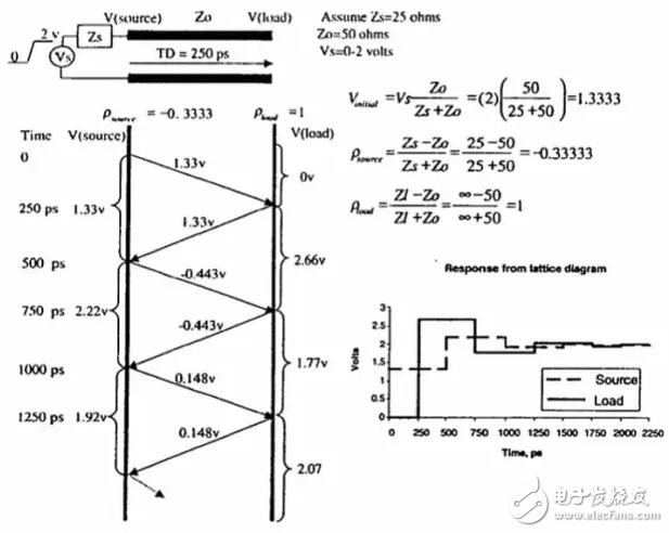 当驱动器发射一个信号进入传输线时,信号的幅值取决于电压、缓冲器的内阻和传输线的阻抗。驱动器端看到的初始电压决定于内阻和线阻抗的分压。