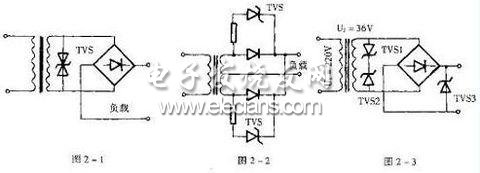 图2-2所示是用单向TVS并联于整流管旁侧,以保护整流管不被瞬时脉冲击穿。