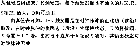 J-K触发器是一种多功能触发器,它既具有R-S触发器的功能,又具有D触发器和T触发器的功能,因此使用十分灵活,它的逻辑图如图中所示,表中是它的真值表。