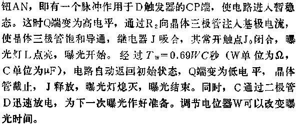 图中是用D触发器组成的曝光定时器电路。曝光时间可在1秒至30秒内任意选择。