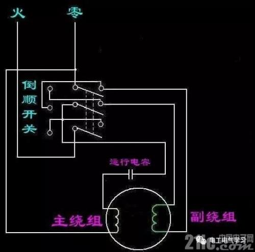 4,单相电机正反转(一个电容)。