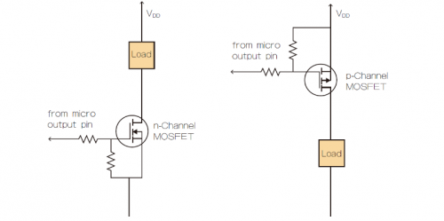 对两种MOSFET晶体管类型做一个快速回顾,我们可以记起来,P沟道MOSFET是通过将栅极电压拉到比源极电压更低来进行栅控的;而N沟道MOSFET的栅极是由比源极更高的电压来导通的。另外,其电流方向是相反的。这两个因素决定了与馈入负载的电压和电流相关的开关方向。