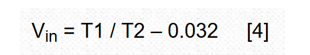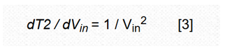 在公式2中,转换结果与时间测量值T2成反比,因此与1/Vin成反比,并且微分计算告诉我们,逆向变化率在变,但不是线性的,而是测量值倒数的平方,即: