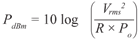 其中PdBm是信号发生器功率(单位:dBm),Vrms是rms电压,R是系统阻抗(本例中为50 Ω),P0是1 mW。