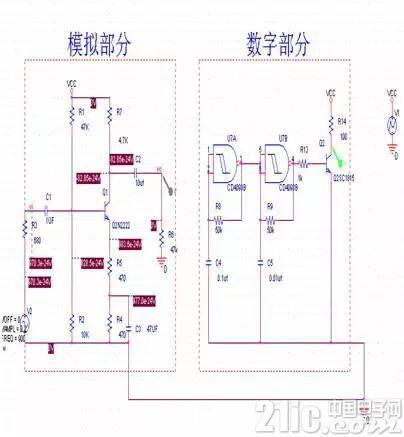 为了大家看的明白…我就用ORCAD画了两个电路,一个是一个普通的三极管模拟放大电路,另一个是数字电路振荡器…好了不废话了…上图…