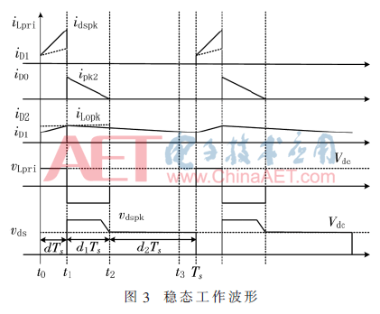 在一个开关周期内,该变换器存在四种开关模态,其工作情况描述如下。