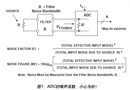 现在,RF应用中会用到许多宽带运算放大器和ADC,这些器件的噪声系数因而变得重要起来。参考文献2讨论了确定运算放大器噪声系数的适用方法。我们不仅必须知道运算放大器的电压和电流噪声,而且应当知道确切的电路条件:闭环增益、增益设置电阻值、源电阻、带宽等。计算ADC的噪声系数则更具挑战性,大家很快就会明白此言不传。 当RF工程师首次计算哪怕是最好的低噪声高速ADC的噪声系数时,结果也可能相对高于典型RF增益模块、低噪声放大器等器件的噪声系数。为了正确解读结果,需要了解ADC在信号链中的位置。因此,当处理ADC的噪声系数时,务必小心谨慎。