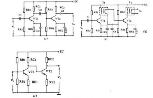 在电子电路中,电源、放大、振荡和调制电路被称为模拟电子电路,因为它们加工和处理的是连续变化的模拟信号。 1. 反馈 反馈是指把输出的变化通过某种方式送到输入端,作为输入的一部分。如果送回部分和原来的输入部分是相减的,就是负反馈。 2. 耦合 一个放大器通常有好几级,级与级之间的联系就称为耦合。放大器的级间耦合方式有三种: ①RC 耦合(见图a): 优点是简单、成本低。但性能不是最佳。 ② 变压器耦合(见图b):优点是阻抗匹配好、输出功率和效率高,但变压器制作比较麻烦。