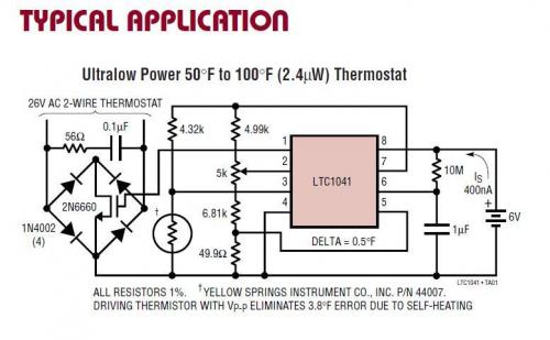 第三部分:热敏电阻器SPICE模型使用较老的IC进行感测,那么较新的IC(如LTC1041)情况如何?