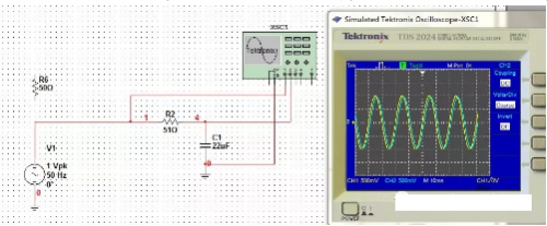 图1 输出幅值变了!信号源输出峰值1V信号,在滤波器输出时,由图1可见,不足1V(每格500mV,不足两格)。怎么回事? 将该滤波器独立出来,利用理想电压源注入信号,观察滤波器输出: