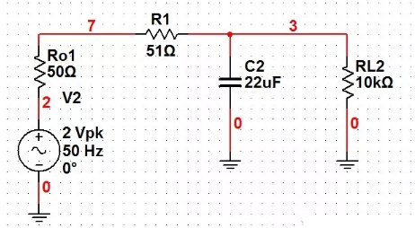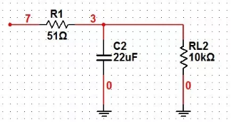 图3 在电路设计或分析时,不考虑前后级及本身的输入输出阻抗,想当然的认为后级接收到的信号峰值为±2V,有木有过?阿呆的确有过,并且因实测输出达不到±2V而迁怒于元器件参数不给力、电路板设计不给力。 那么到底给如何去分析呢,首先我们看前级输出到RC滤波器的定量关系: