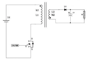 工作原理: 变压器的一次和二次绕组的极性相反,这大概也是Flyback名字的由来: a.当开关管导通时,变压器原边电感电流开始上升,此时由于次级同名端的关系,输出二极管截止,变压器储存能量,负载由输出电容提供能量。 b.当开关管截止时,变压器原边电感感应电压反向,此时输出二极管导通,变压器中的能量经由输出二极管向负载供电,同时对电容充电,补充刚刚损失的能量。
