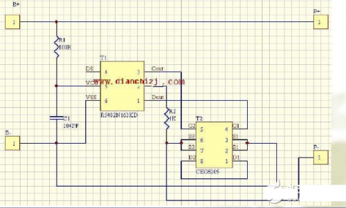 典型的锂电池保护电路 由于锂电池的化学特性,在正常使用过程中,其内部进行电能与化学能相互转化的化学正反应,但在某些条件下,如对其过充电、过放电和过电流将会导致电池内部发生化学副反应,该副反应加剧后,会严重影响电池的性能与使用寿命,并可能产生大量气体,使电池内部压力迅速增大后爆炸而导致安全问题,因此所有的锂电池都需要一个保护电路,用于对电池的充、放电状态进行有效监测,并在某些条件下关断充、放电回路以防止对电池发生损害 下图为一个典型的锂电池保护电路原理图。