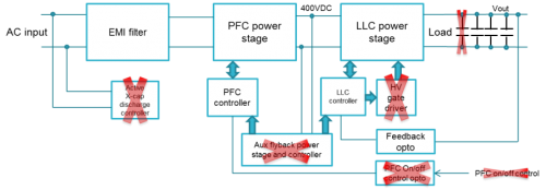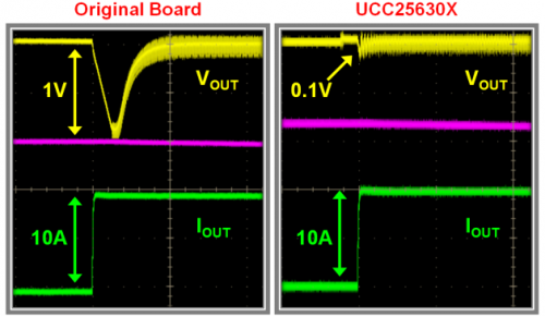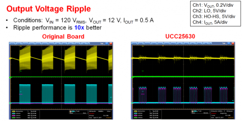 原装电路板的性能其实不错。然而,请看UCC256301在那上面的表现!负载瞬态响应变得不那么重要。对于制造商来说,这可能意味着输出电容降低20%,更不用说其他组件在加强性能和整合方面的节省情况。图3中的框图说明了与此器件一样具有不同系统级电路所节省的地方。