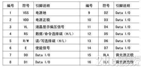 LCD1602引脚图   第1脚:VSS为地电源。 第2脚:VDD接5V正电源。 第3脚:VL为液晶显示器对比度调整端,接正电源时对比度最弱,接地时对比度最高,对比度过高时会产生“鬼影”,使用时可以通过一个10K的电位器调整对比度。 第4脚:RS为寄存器选择,高电平时选择数据寄存器、低电平时选择指令寄存器。 第5脚:R/W为读写信号线,高电平时进行读操作,低电平时进行写操作。当RS和R/W共同为低电平时可以写入指令或者显示地址,当RS为低电平R/W为高电平时可以读忙信号,当RS为高电平R/W为低电平时可以写入数据。 第6脚:E端为使能端,当E端由高电平跳变成低电平时,液晶模块执行命令。 第7~14脚:D0~D7为8位双向数据线。 第15脚:背光源正极。第16脚:背光源负极。