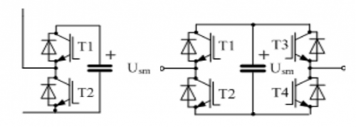 模块化多电平换流器 MMC与另两种换流器不同,因为每个阀就是一个具有内置式平流电容器的换流器模块。MMC取代了含有多个IGBT的阀,它具有多个级联的换流器模块。其中每一个模块都代表了特定的电压电平。MMC中的换流器模块是半桥式或全桥式换流器。
