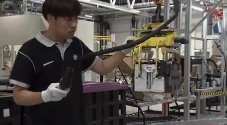 点评几句: 1)模组线基本与德国齐平,本来也没啥手动的 2)Pack线参观的时候,基本把我们往测试的地方带,实际你也看到了 电气设备线束和BMU/CMU/PRA是手工装的^_^ BMW对整个电池系统有着很强大的质量管控,整个技术核心是其MES系统对电池产线的数字化,可以兼容不同的配置。我们采用半手工的Pack线在节拍较低的条件下,是可行的。在较高的产品需求下,再一步步把总成组装起来,AGV小车用起来就是了