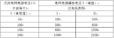 1、根据交流电网电压有效值和过电压类别确认交流电网电源瞬态电压(由附录Z和表2J确定);