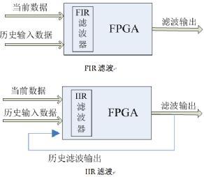 l信号处理速度:FIR的滤波输出取决于当前输入数据和历史输入数据,IIR的滤波输出取决于当前输入数据、历史输入数据和历史输出数据。以基于FPGA硬件的数字滤波器为例,FIR在处理信号时不需等待前一个信号的滤波输出,只需要考虑输入数据便可实时滤波;IIR需要等待上一个信号的滤波输出,存在一定的时间延迟,所以处理速度上没有FIR快。