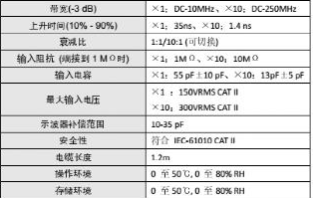 探头作为测试的第一环节,能否将信号高保真的传输至示波器是能否准确测试分析的重点,所以,在测试较高频率信号时,需注意探头的带宽和输入电容是否合适,下表为ZDS2000系列示波器标配探头参数。