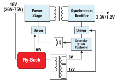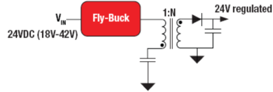 如果应用同时需要隔离式和非隔离式电源轨,Fly-Buck拓扑就是一个具有高成本有效性的解决方案。可以在不增加额外系统开销的情况下使用Fly-Buck转换器(从本质上说,它是一个降压转换器)的初级输出。