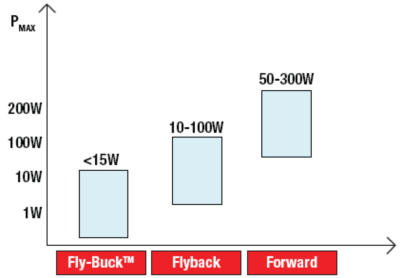 Fly-Buck拓扑中使用的变压器是一个耦合电感器或是一个反激式变压器。它就像降压转换器中的一个电感器一样储存能量。正激式、半桥、或全桥拓扑中使用的变压器不储存能量,或者储存的能量可以忽略不计,并且不适用于Fly-Buck拓扑。