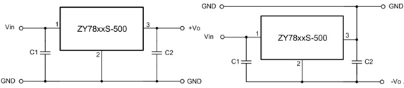 如图3所示,此电源模块应用与常用的LM7805类似,而且不需要安装散热片。如上图,我们需要正负电压给运放等供电时,只需要两个ZY78xxS-500电源即可实现。