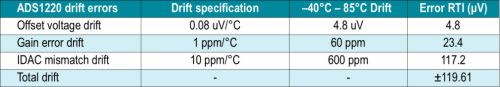 总漂移误差主要是因IDAC失配漂移引起的;在-40°C至85°C的系统工作温度范围内,总漂移误差还会另外产生±0.306℃的温度误差。