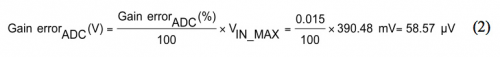 明确规定增益误差要用满量程范围的百分率(也称为%FSR)表示。可通过方程式(2)增益误差乘以RTD输入电压最大值来计算出输入相关电压误差。