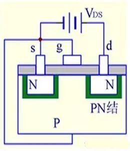 (1) VGS=0时,不管VDS极性如何,其中总有一个PN结反偏,所以不存在导电沟道。