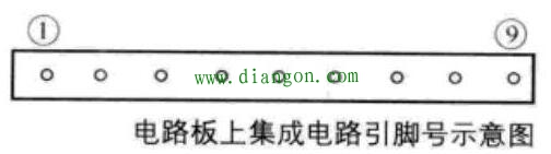 在集成电路的引脚排列图中,可以看到它的各个引脚编号,如1,2,3脚等。在检修、更换集成电路过程中,往往需要在集成电路实物上找到相应的引脚。