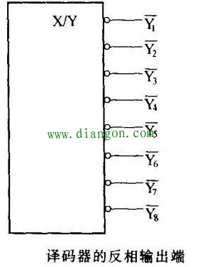 译码器的多个反相输出端,分别标注有加了短杠“-”的字符,如下图所示。