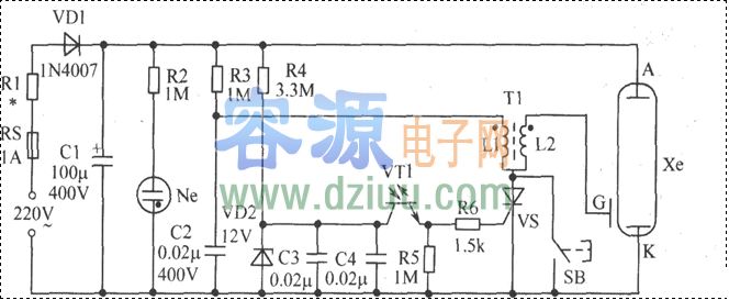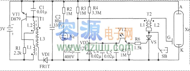电池供电的同步闪光灯电路图 <<