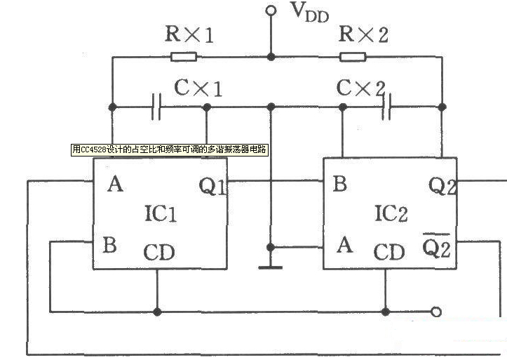 一款CC4528的双单稳态触发器设计多谐振荡器电路图