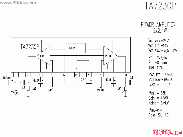 TA7230功率放大器应用线路图