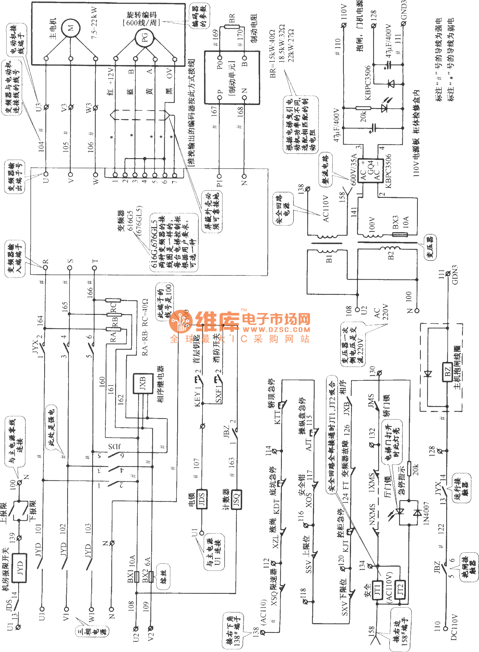 天津正大电梯主电路与安全回路: