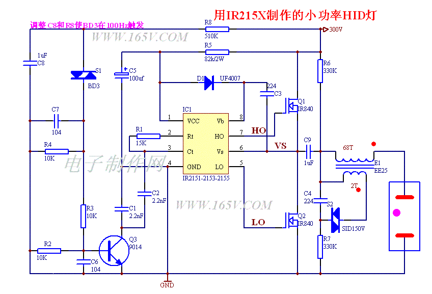 用IR2151、53、55制作的小功率HID灯(金卤灯)