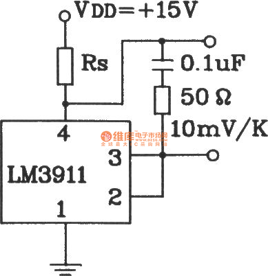 由LM3911单片温度控制集成电路构成电容性负载测温电路