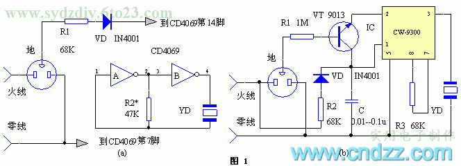 CW9300CD4069 简易漏电报警器 这里介绍的两种报警器,电路简单、触发灵敏,能直接装入组合式插座内,适用于家用电器的漏电报警,价廉易做。工作原理 查看联系方式 版权声明:网站转载的所有的文章、图片、音频视频文件等资料的版权归版权所有人所有。如果本网所选内容的文章作者及编辑认为其作品不宜公开自由传播,或不应无偿使用,请及时联络我们,采取适当措施,避免给双方造成不必要的经济损失。 文章导航 采用555时基全自动快速充电电路设计 5款简单跑马灯电路图大全(八路跑马灯/CD4017/SH9043跑马灯电路图分享) – 嵌入式类电子电路图 相关文章 电路图 SSR固态继电器的常见问题及注意事项 8 月 23, 2023 这儿的夜不黑 电路图 低成本降压型调节器电路 – 调压电路图讲解 7 月 6, 2019 前前 电路图 电冰箱风冷节电自控器电路 7 月 6, 2019 前前