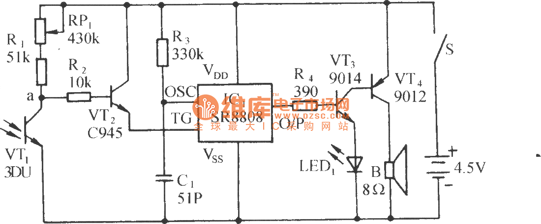 液化气灶熄火声光报讯电路