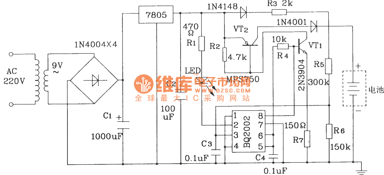 由BQ2002电池快速充电控制集成电路构成电池快速充电电路