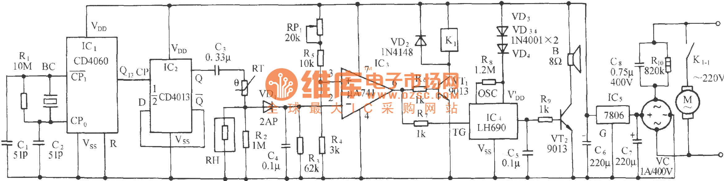 库房湿度检测及自动通风排气装置电路(MS01-A)