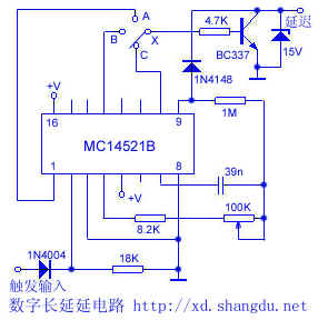 一般的长延时电路通常要借助电解电容器或高阻抗电路。这类延时电路的稳定性较差,延时的精度也不高。