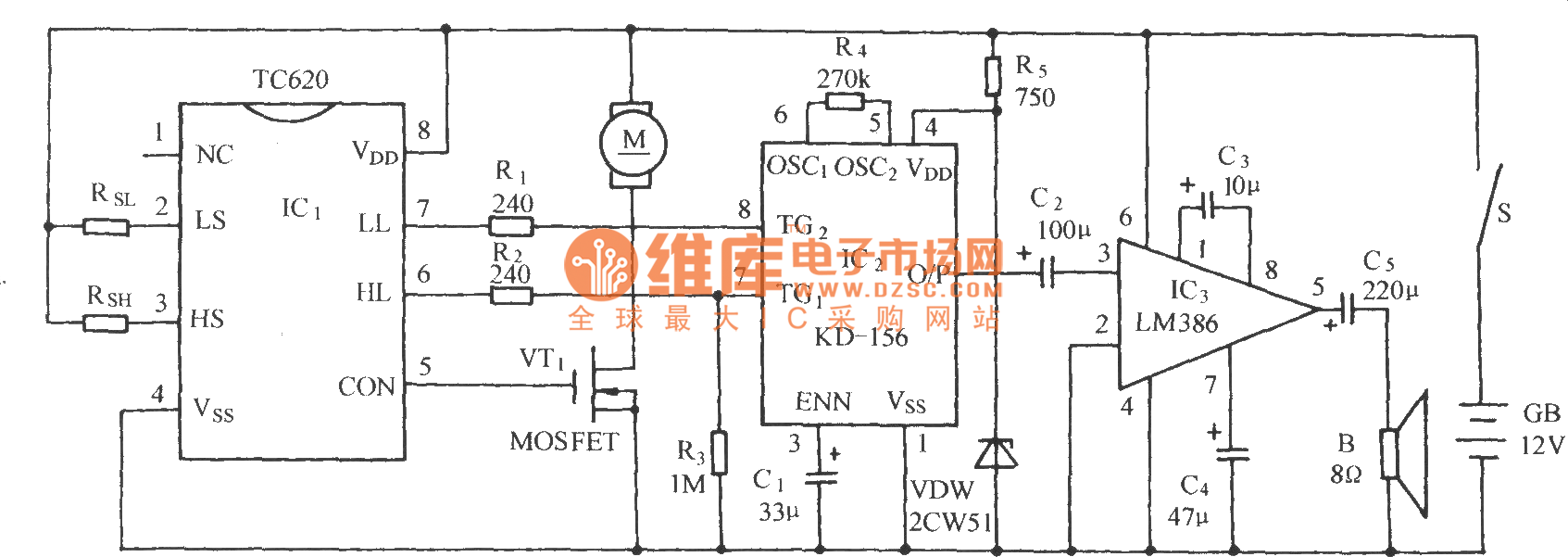 TC620温度传感通风降温自动控制电路