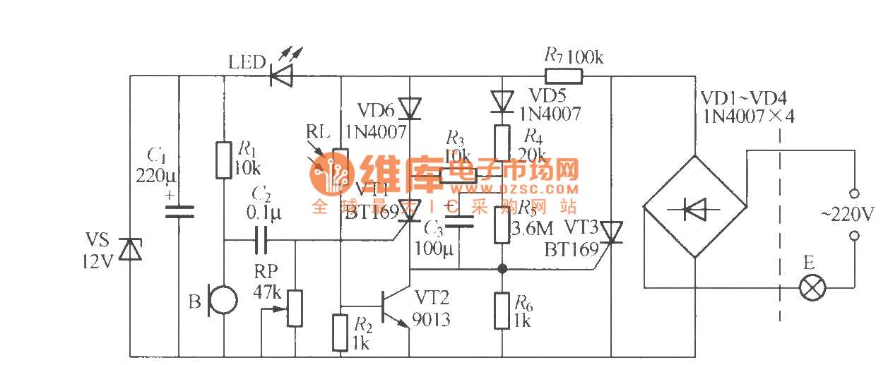 分立元件声光控楼梯延迟开关电路(5)