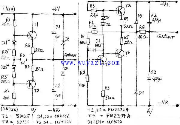 作为例子我们随后会讨论几个简单的应用。这些电路都有推挽输出电路和输出电压的简单调节。它们类似于作为直流放大器工作的晶体管型音频放大器电路。