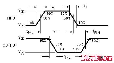CD40106由六个斯密特触发器电路组成。每个电路均为在两输入端具有斯密 特触发器功能的反相器。触发器在信号的上升和下降沿的不同点开、关。上升电压(V T+)和下降电压(V T-)之差定义为滞后电压。