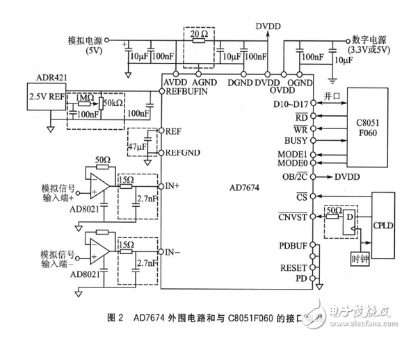 高速率、高精度的18位AD7674($39.7200) 与C8051F060($12.4861)之间并口通信的接口电路设计。采用的单片机配置灵活,传输速度快,接口采用并口通信,可实现嵌入式数据采集系统高速数据传输;同时 AD7674与AD7678($27.2760)、AD7679($23.4000)等18位SAR ADC 以及AD7621($44.3760)、AD7623($29.2080)等16位高速SAR ADC 引脚相兼容,从而大大增强了系统开发的灵活性和拓展性。