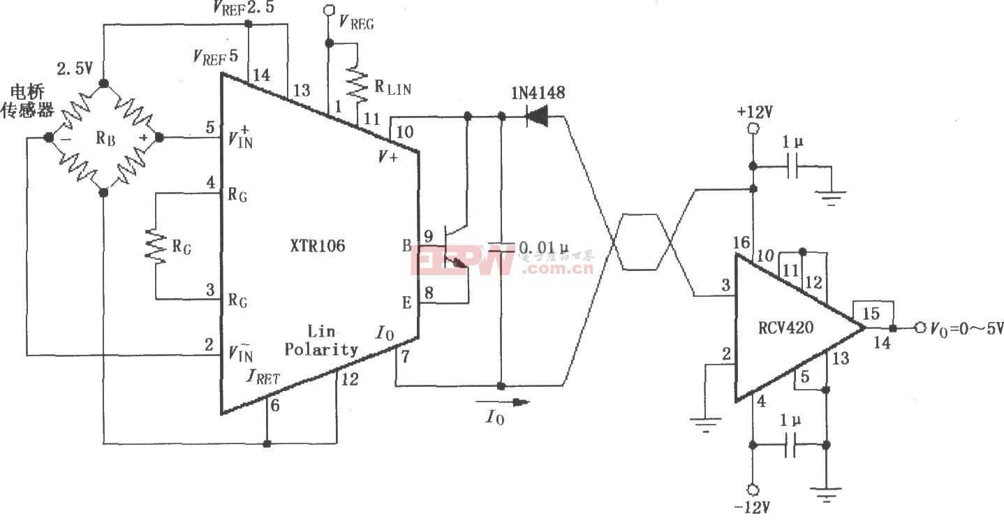 如图所示,二极管IN4148串联在V+和环路中,可防止线路因反接而损坏器件,在环路中仅损耗0.7V(硅二极管的正向压降)的电源供电电压。图中Lin Polarity为正桥非线性校正连接。 查看联系方式
